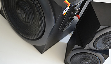 Mỗi vệ tinh có dải trung 3,5 inch được làm hoàn toàn bằng sợi lignin * - giống như loa trung tâm - cho phép một màn trình diễn xuất sắc. Vòng treo được làm bằng cao su, tối ưu hóa chuyển động của cuộn dây