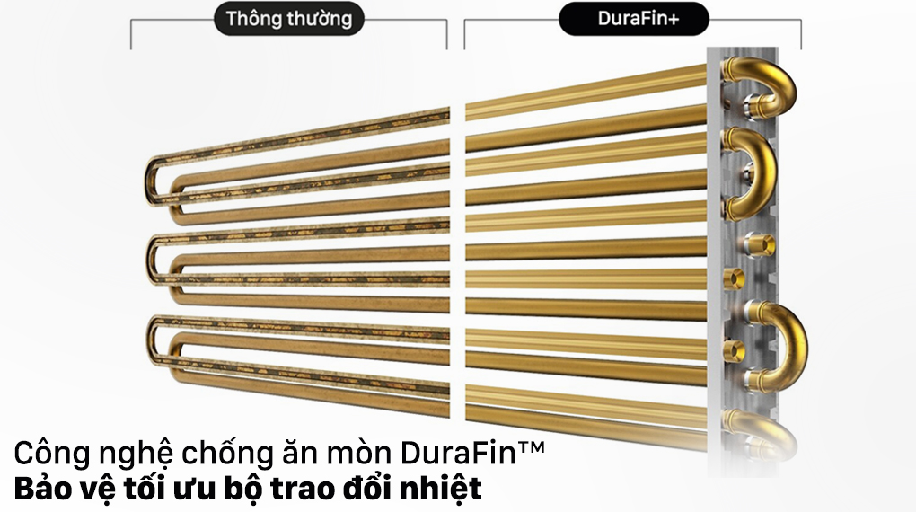 Công nghệ chống ăn mòn DuraFin™ giúp máy lạnh tăng cường hiệu quả hoạt động của bộ trao đổi nhiệt với chất liệu thiết kế dày và đặc hơn cùng lớp phủ cải tiến giúp ngăn ngừa tối đa quá trình ăn mòn.